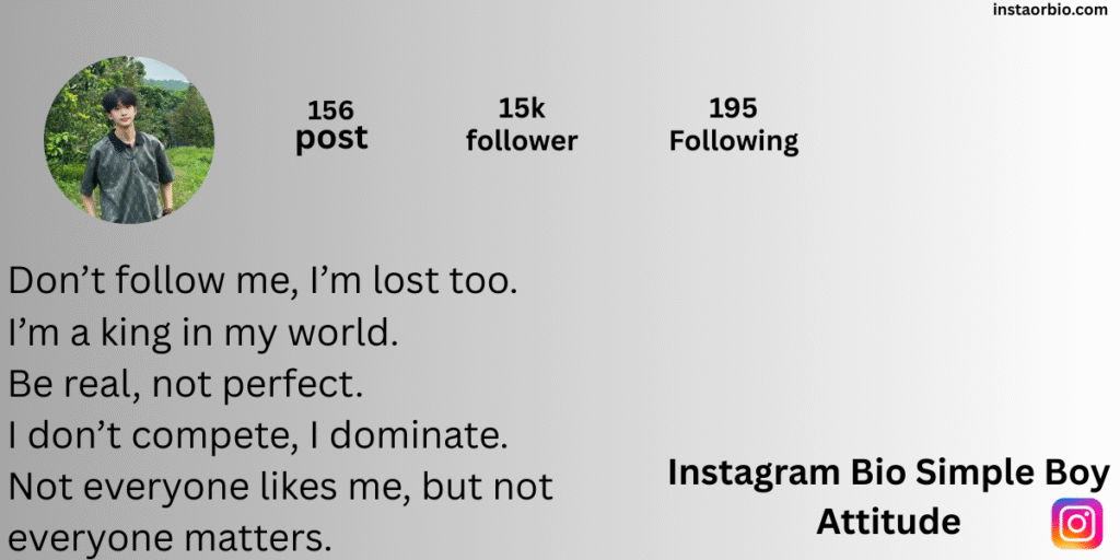 An Instagram bio with attitude is perfect for boys who want to showcase confidence and strength in a simple way. It doesn’t need to be arrogant; instead, it should reflect self-belief and individuality. Short lines like “Calm mind, strong vibes” or “My attitude is based on your behavior” can say a lot with very few words. Adding minimal emojis like can enhance the style without making it too flashy. The key is to stay simple yet bold, where your bio shows that you don’t follow the crowd but stand out with your unique energy, mindset, and confidence.